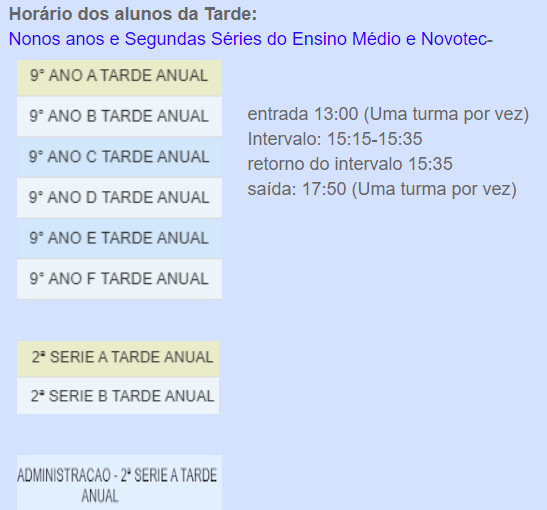 Consulte o Horário das aulas: